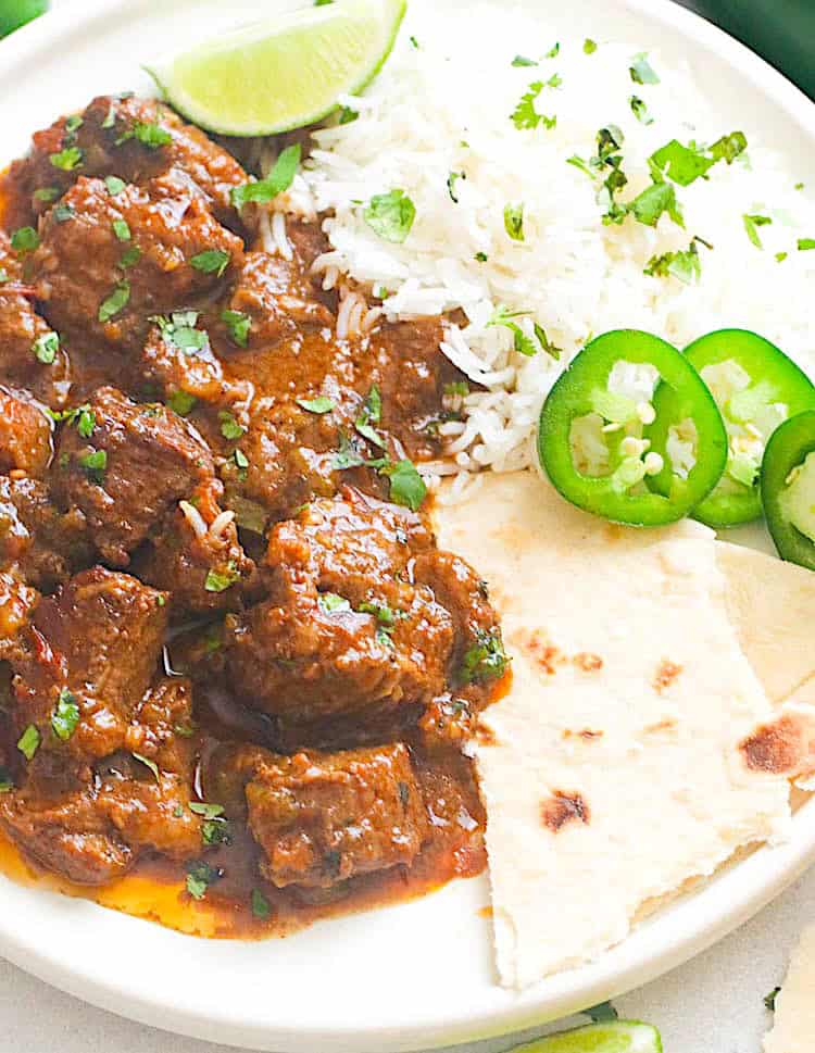 Carne Guisada is Mexican comfort food in the form of a spicy beef stew with tons of flavor. Every bite is an explosion of savory goodness with a thick, rich sauce. Smother steaming rice with this deliciousness for a gorgeously enticing and perfectly spiced meal.