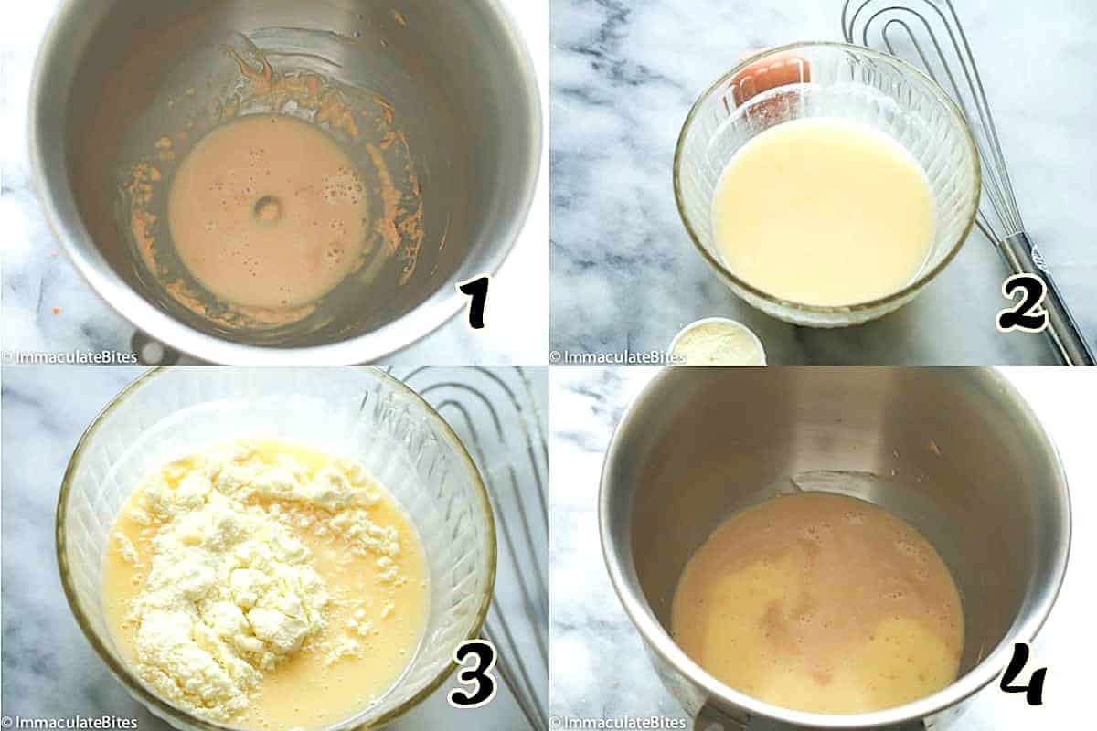- Egg – Lightly whisk the egg and powdered milk into the butter mixture. (Photo 3-4)