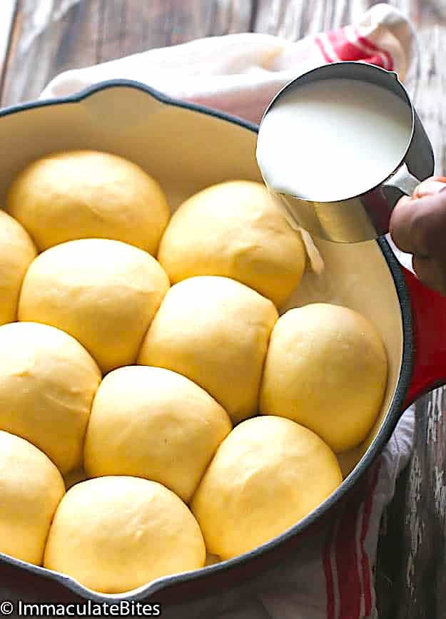 Most of the recipes I perused had milk. It deepens the flavor and produces a beautiful golden and crusty outer layer. I only added as much coconut milk as the bread could absorb. If you prefer a soggy bottom, add more coconut milk (about a ¼ cup more).