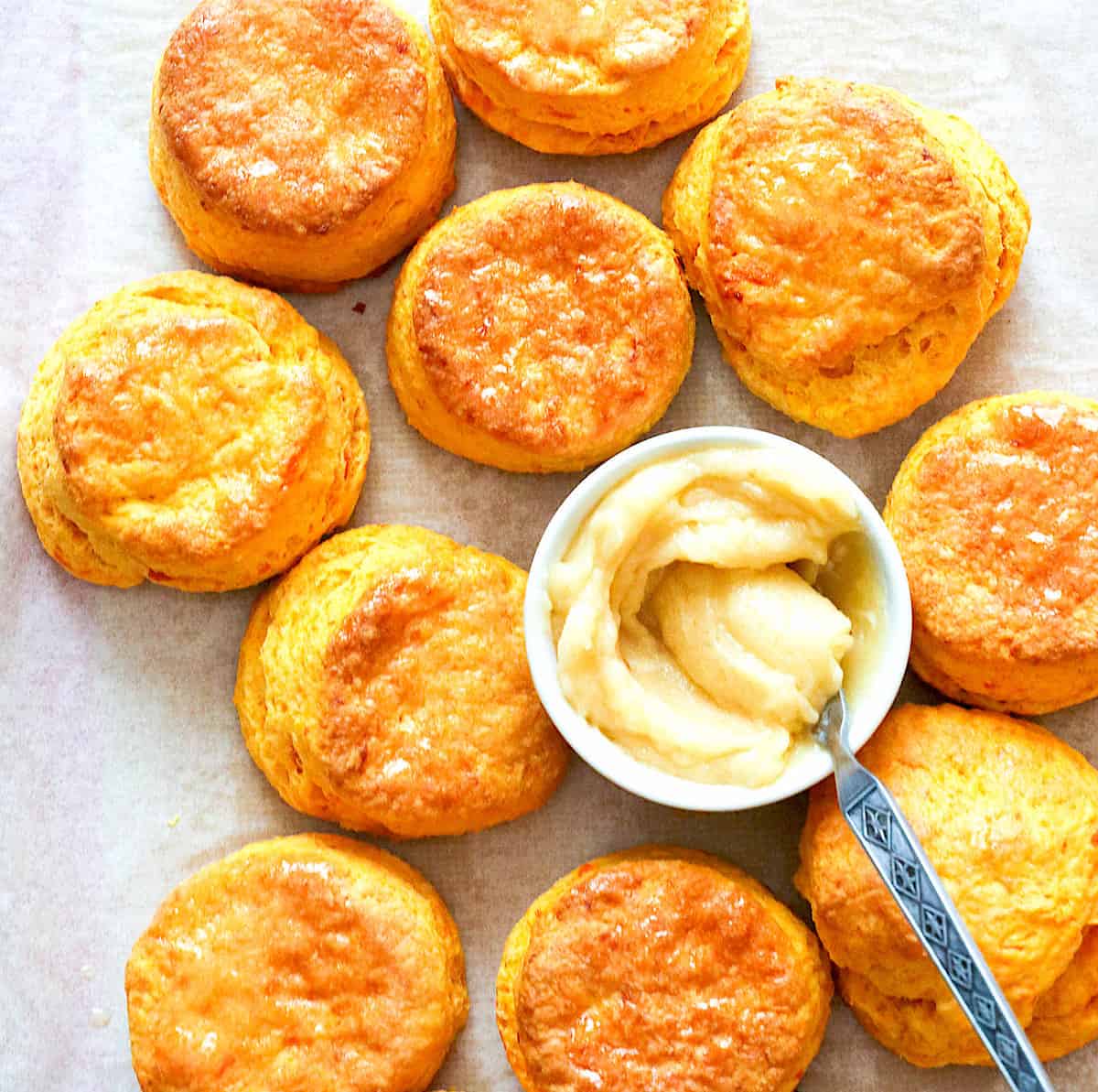 There’s no right or wrong answer here. I love to make this sweet potato biscuit recipe as a side to savory meals like roast turkey or baked chicken. But they work well with just about any meal you want to serve bread with. But I also love to make these for breakfast. A hot cup of coffee and a warm sweet potato biscuit slathered in honey butter or homemade jam is a fantastic way to kick off the day if you ask me.